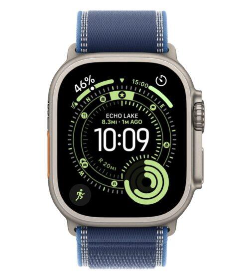 Apple Watch Ultra 3 49 мм (титановый корпус, природный/синий, текстильный ремешок) размер M